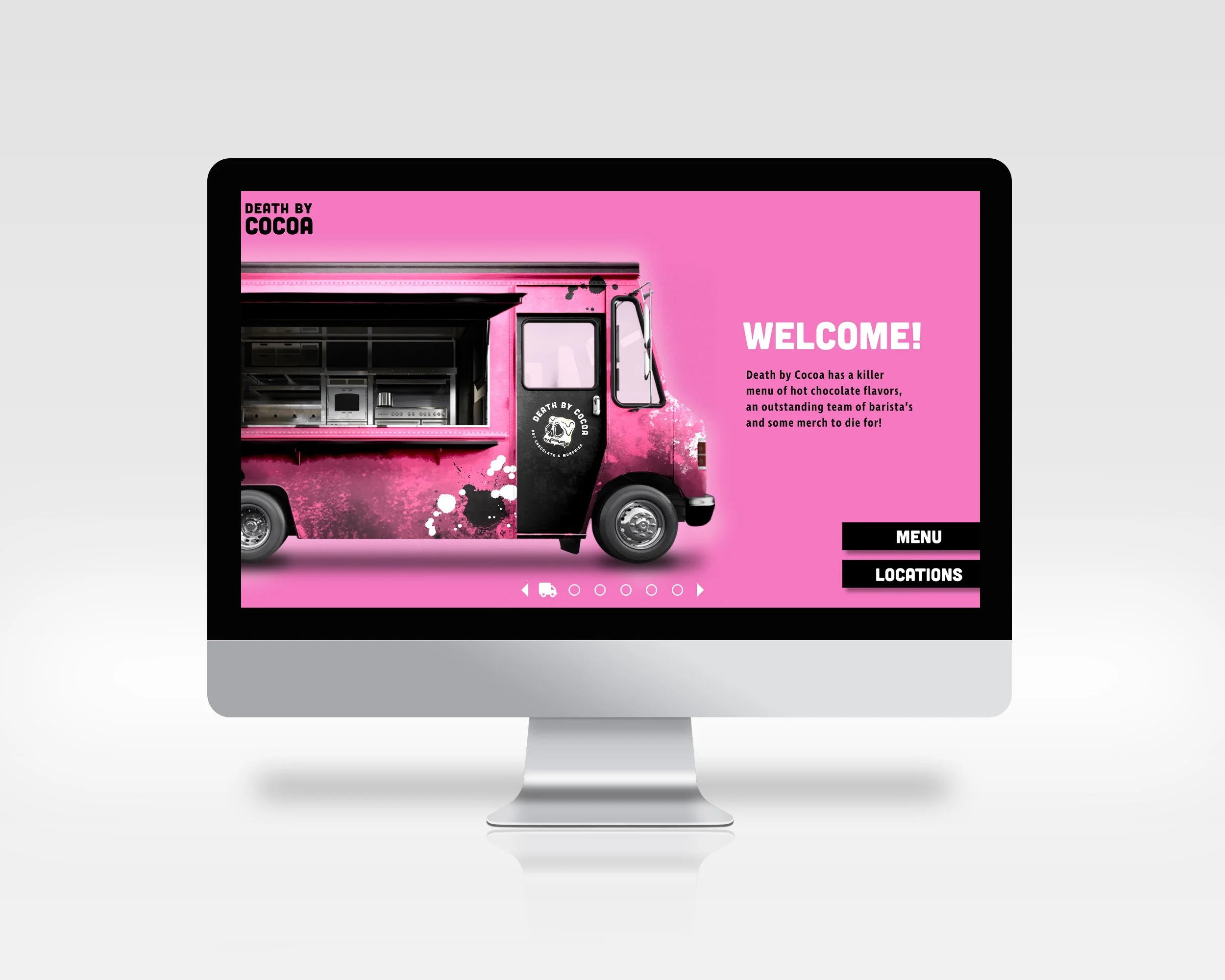 To independently research, design, and produce a logo, food truck mockup, micro site, social media, 2 printed advertisements, and packaging for Death by Cocoa food truck.