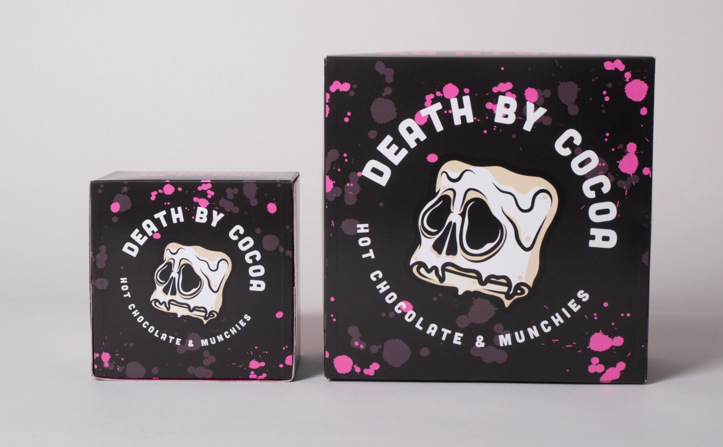 The Logo process was the longest one out of all the deliverables because I was challenged with illustrating a marshmallow to look as if it was melting. I also knew I wanted it to have a skull face to tie it back in with the “Death by Cocoa” name.